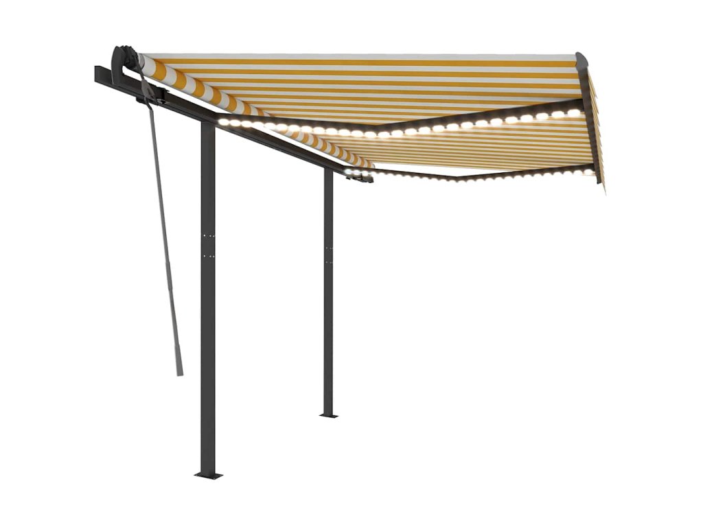 Táto vonkajšia markíza postavená z nehrdzavejúceho hliníkového rámu s práškovým nástrekom je ľahká, ale odolná. Vďaka pevnému železnému stĺpiku je stabilná. Látka markízy je vyrobená z polyesteru s vysokou hustotou s PU povlakom, ktorý je odolný voči vode a UV žiareniu. Uhol a výšku je možné prispôsobiť vašim konkrétnym potrebám. Markízu môžete hladko otvárať a zasúvať pomocou dlhej kľuky. Navyše, solárne napájané LED svetlá poskytujú v noci energeticky úsporné osvetlenie.