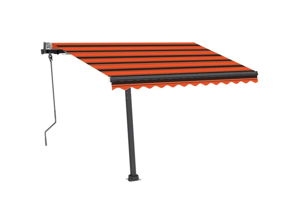 Pred montážou a použitím výrobku je nutné prečítať si návod na obsluhu. Odložte si tento návod, aby ste ho mohli v budúcnosti v prípade potreby použiť. Tento výrobok je určený len na vonkajšie a domáce použitie ako ochrana pred slnkom alebo dekorácia. Nikdy výrobok nepoužívajte na iné účely ani ho neupravujte. Nepoužívajte výrobok na miestach, kde dochádza k vibráciám alebo impulzom alebo kde by bol vystavený vysokým teplotám, napríklad na stenách v blízkosti pece. Pri montáži a nastavovaní markízy vždy používajte vhodné osobné ochranné pomôcky. Pri práci vo veľkých výškach hrozí riziko pádu, používajte vhodnú ochranu proti pádom. Pri montáži buďte opatrní, hrozí riziko pomliaždenia a pricviknutia. NEODSTRAŇUJTE bezpečnostné fólie. Tieto fólie sa môžu odstrániť len po dokončení všetkých montážnych krokov a po upevnení všetkých skrutiek a pripevnení predmetu k stene. Predčasné odstránenie fólií môže mať za následok vážne zranenie. Tento výrobok a jeho upevňovacie diely sú vhodné len na inštaláciu na hladkú cementovú stenu alebo stabilné neomietnuté murivo. Ak sa na stene/murive nachádzajú praskliny, musíte sa poradiť s odborníkom. Ak má vaša budova vonkajší plášť (napríklad izoláciu, dvojitú tehlovú stenu alebo tehlový obklad), inštaláciu by mal vykonať odborník. Nikdy neinštalujte výrobok na vyvýšených a veterných miestach, pretože by mohlo dôjsť k pádu tieniacej plachty a zraneniu osôb. Markízu neinštalujte, pokiaľ sú niektoré diely poškodené alebo chýbajú. Vonkajšia roleta sa musí stiahnuť v prípade, že rýchlosť vetra presahuje 28 km/h. Pred otvorením markízy sa uistite, že sú všetky držiaky pevne namontované do steny a že sú všetky skrutky poriadne utiahnuté. Markízu VŽDY ZATVÁRAJTE v prípade silného vetra, dažďa a keď sa nepoužíva. V opačnom prípade môže dôjsť k zraneniu osôb a/alebo poškodeniu majetku. Výsuvné ramená sú veľmi napnuté a môžu spôsobiť vážne poškodenie alebo zranenie. Deti by mali byť pod dozorom, aby sa so spotrebičom nehrali. Nepoužívajte výrobok, ak je potrebné ho opraviť alebo nastaviť. Nepoužívajte markízu, ak sa v jej blízkosti vykonáva údržba, ako napríklad čistenie okien. Prevádzka v mrazivých podmienkach môže markízu poškodiť. Nepokladajte na rám ťažké predmety, pretože by mohli spadnúť a spôsobiť škody. Príliš pevne alebo príliš slabo utiahnuté upevňovacie prvky by mohli spôsobiť poškodenie produktu alebo predstavovať nebezpečenstvo pre ľudí. Varovanie: Látka by sa počas používania nemala prepadávať, inak sa na nej bude hromadiť voda. Látku neodstraňujte a neperte. Ak potrebujete látku vymeniť, obráťte sa na odborníkov a nechajte si poradiť. Pri ovládaní ručného spúšťania so zatiahnutou vonkajšou roletou buďte opatrní, pretože môže dôjsť k jej rýchlemu pádu v dôsledku slabých alebo poškodených pružín. Nebezpečenstvo! Silná pružina pri otváraní. NEODSTRAŇUJTE toto lano, kým neukončíte všetky montážne kroky a kým všetky skrutky nie sú utiahnuté a zariadenie nie je pripenené k stene! Varovanie! Pri uvoľňovaní ramien buďte opatrní, pretože sú napnuté! Náhle uvoľnenie ramena markízy môže spôsobiť poranenie. Varovanie: Pred použitím tohto produktu by ste si mali prečítať návod na obsluhu. Varovanie: použitie v mraze môže výrobok poškodiť. Vonkajšie použitie v stavebníctve a iných stavebných úkonoch.