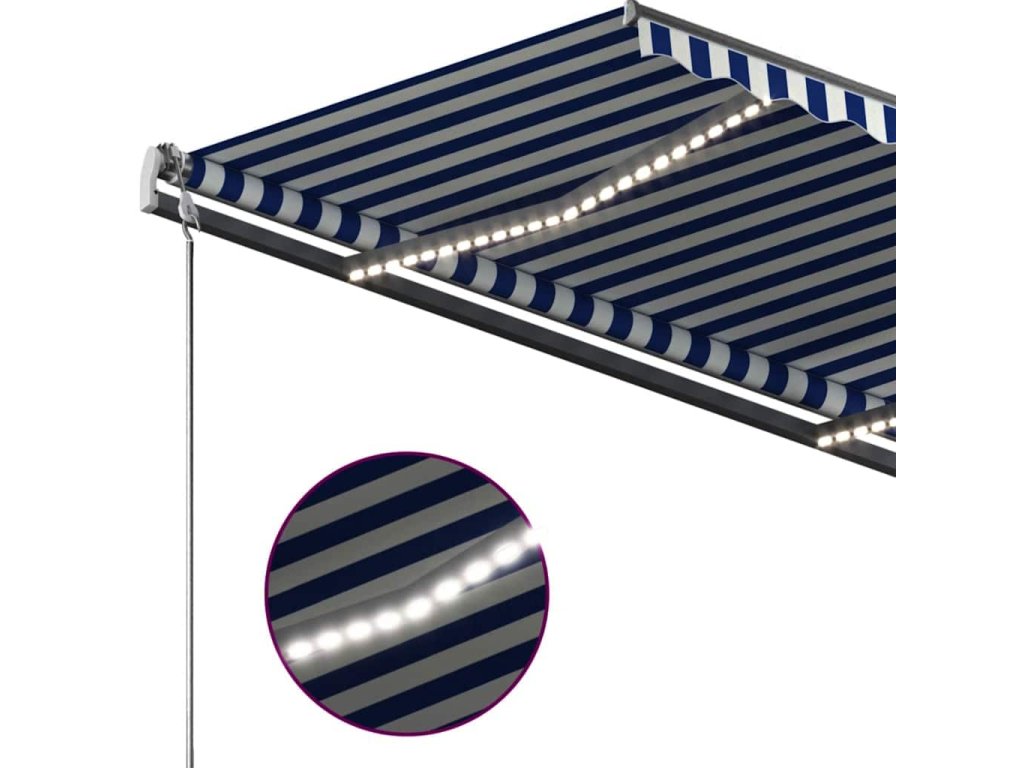 vidaXL Ručne zaťahovacia markíza s LED 350x250 cm modrá a biela