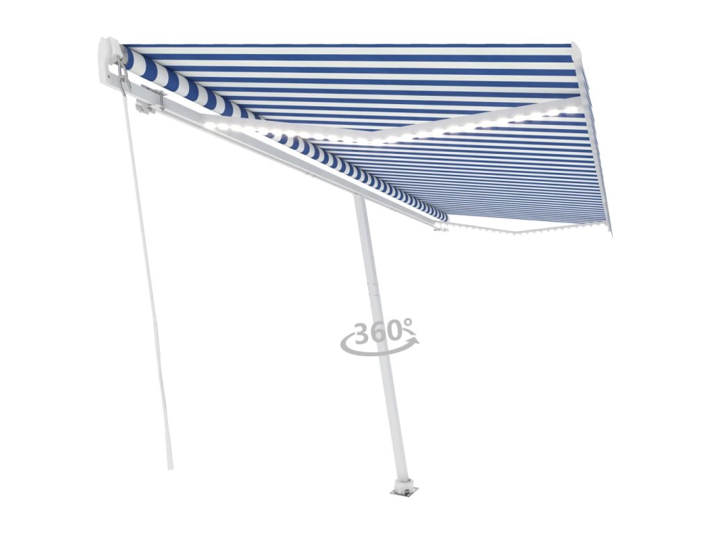 vidaXL Ručne zaťahovacia markíza s LED 500x300 cm modrá a biela
