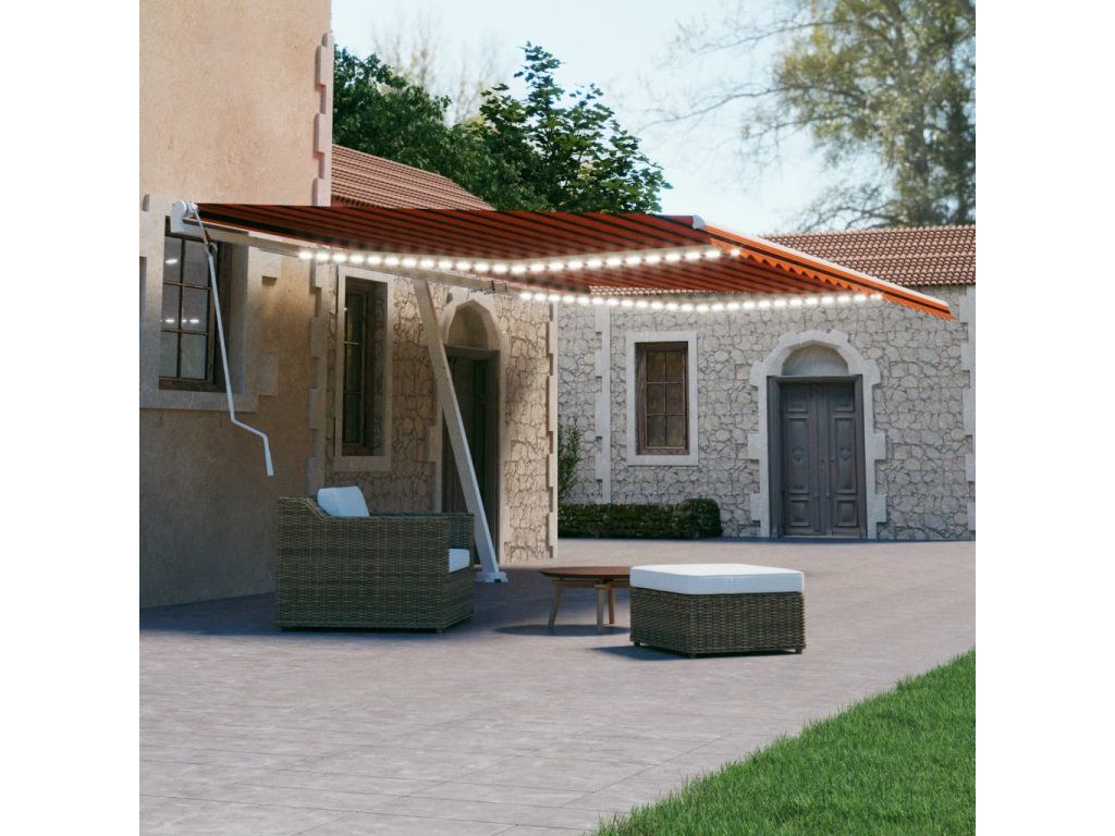 vidaXL Ručne zaťahovacia markíza s LED 600x300 cm oranžovo-hnedá