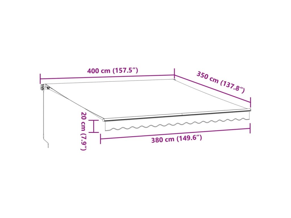 vidaXL Ručne zaťahovacia markíza s LED antracit a biela 400x350 cm