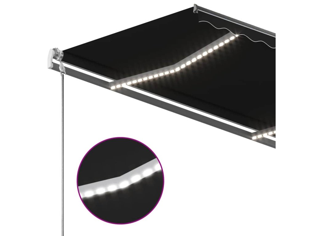 Táto vonkajšia markíza má rám vyrobený z nehrdzavejúceho hliníka s práškovou povrchovou úpravou. Má ľahký dizajn, ale napriek tomu pevnú štruktúru. Ručne zaťahovacia markíza má tkaninu vyrobenú z polyesteru s vysokou hustotou a PU povrch, ktorý je vodeodolný a odolný voči UV žiareniu. Uhol a výška sa dá upraviť podľa vašich konkrétnych potrieb. Pomocou dlhej kľučky ju môžete jednoducho otvoriť a zatiahnuť. Solárne LED svetlá navyše poskytujú v noci energeticky úsporné osvetlenie. Robustná základňa sa dá otáčať o 360 stupňov, čo poskytuje voľnosť v nastavovaní.