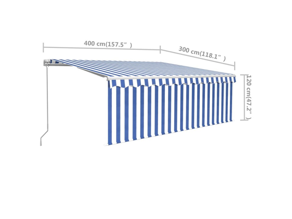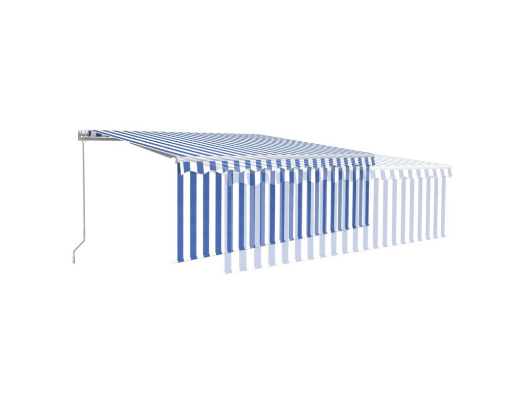vidaXL Ručne zaťahovacia markíza s tienidlom 4x3 m modro-biela
