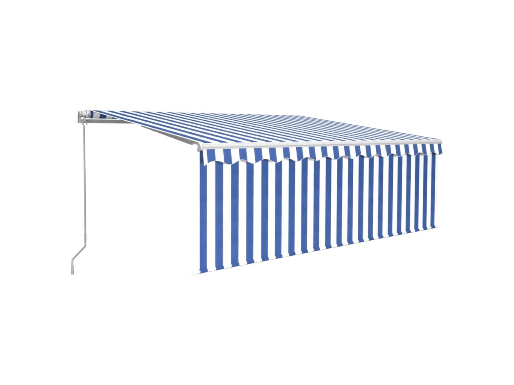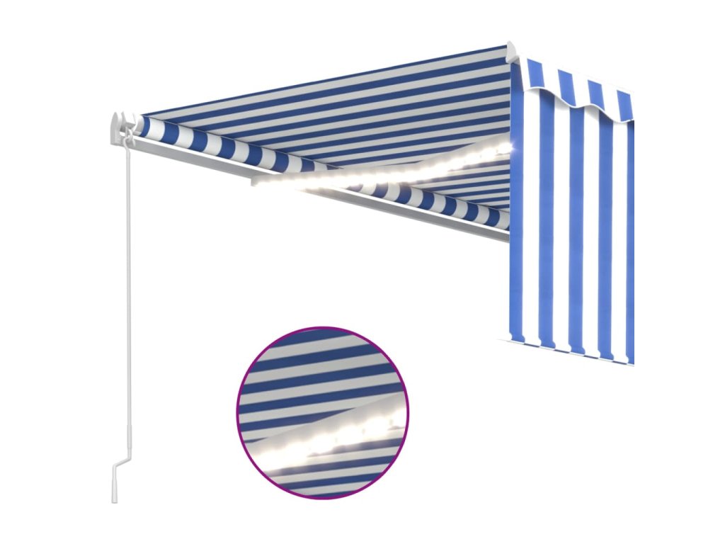 vidaXL Ručne zaťahovacia markíza s tienidlom a LED 4x3 m modro-biela