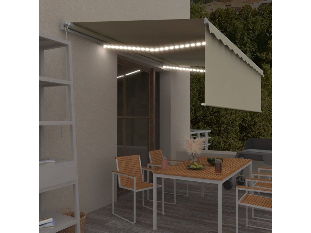 vidaXL Ručne zaťahovacia markíza s tienidlom a LED 5x3 m krémová