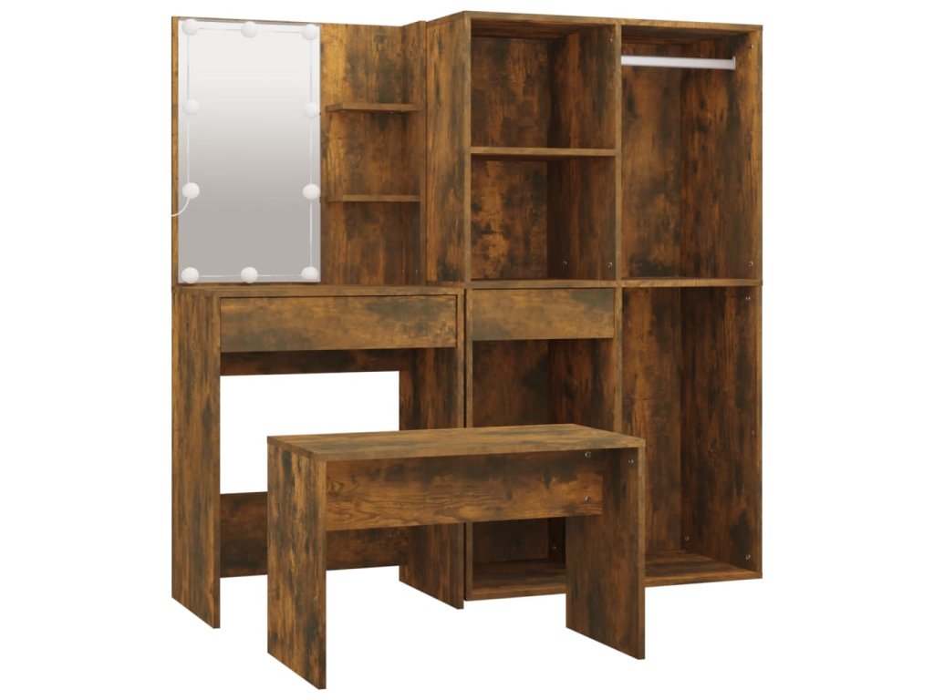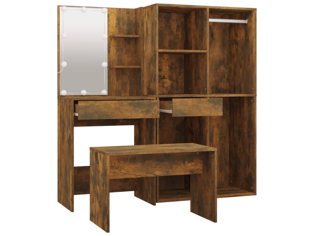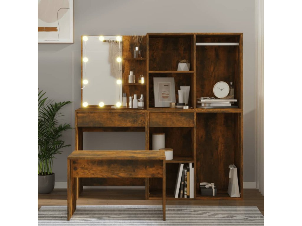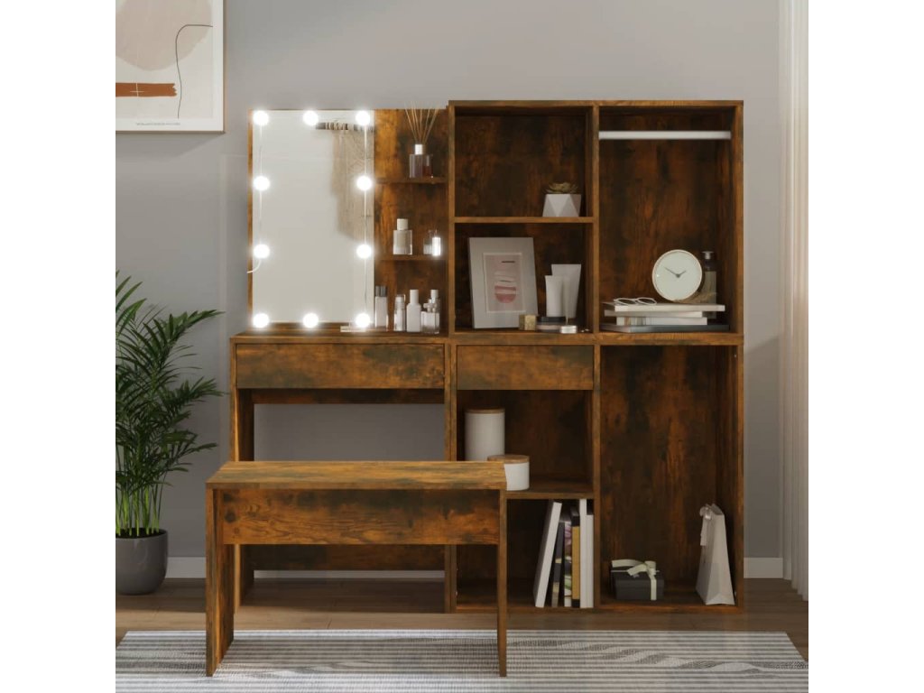vidaXL Sada toaletného stolíka s LED dymový dub spracované drevo