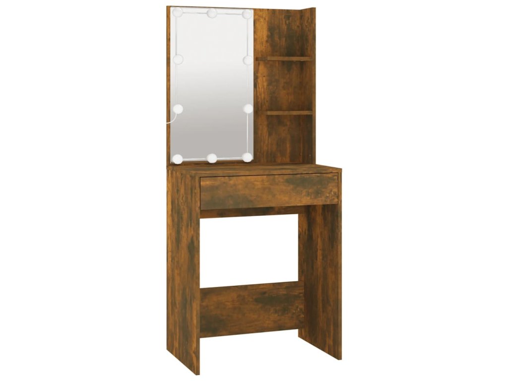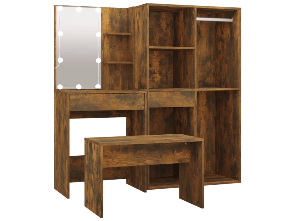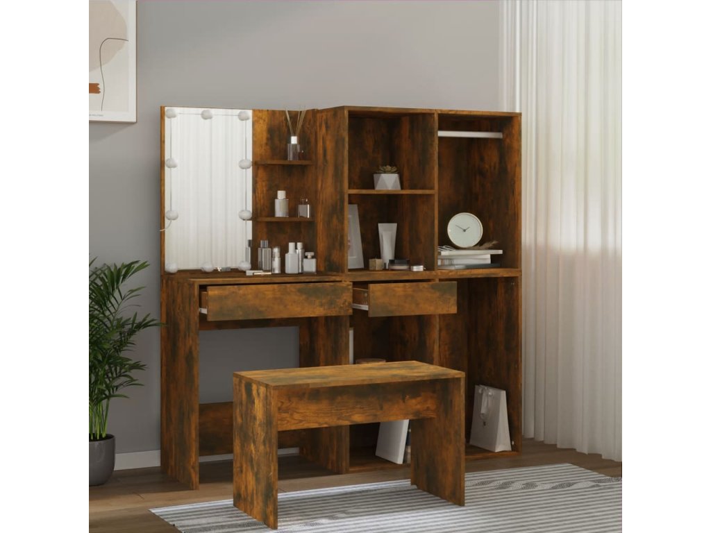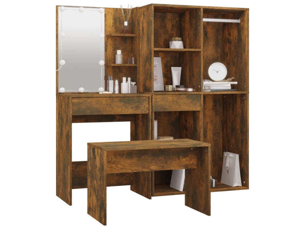 vidaXL Sada toaletného stolíka s LED dymový dub spracované drevo