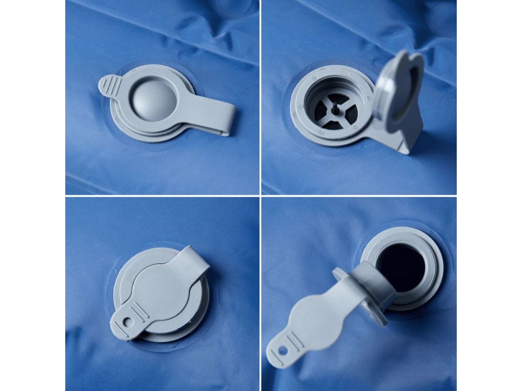 - Rýchle nafúknutie a vyfúknutie: Táto samonafukovacia karimatka na spanie má nožnú pumpu, ktorú môžete rýchlo nafúknuť za približne 90 sekúnd. Takisto sa dá ľahko vyfúknuť. Stačí vybrať vypúšťaciu zátku, vytlačiť vzduch a zložiť podložku späť do prepravnej tašky.