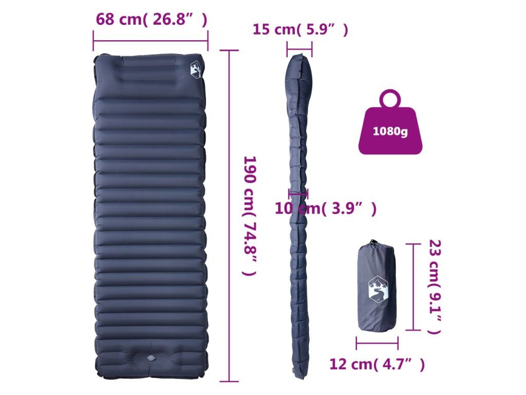 - Odolný a vodeodolný: Samonafukovací kempingový matrac je zložený z nylonu 40D a poťahu TPU, vďaka čomu je odolný, vodeodolný a odolný voči poveternostným vplyvom.
