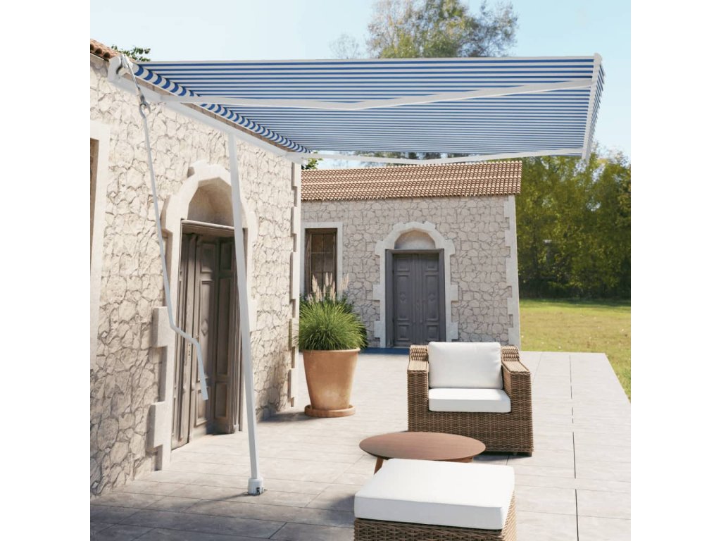 vidaXL Samostatne stojaca automatická markíza 300x250 cm modro-biela