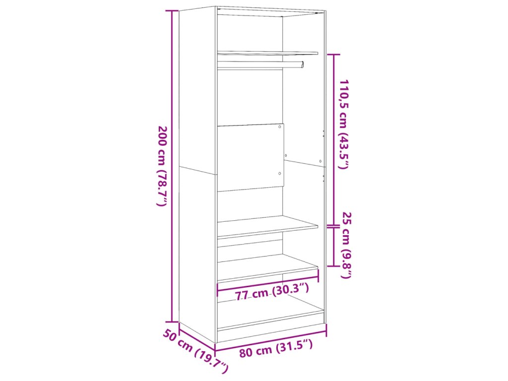 - Rozmery: 80 x 50 x 200 cm (Š x H x V)