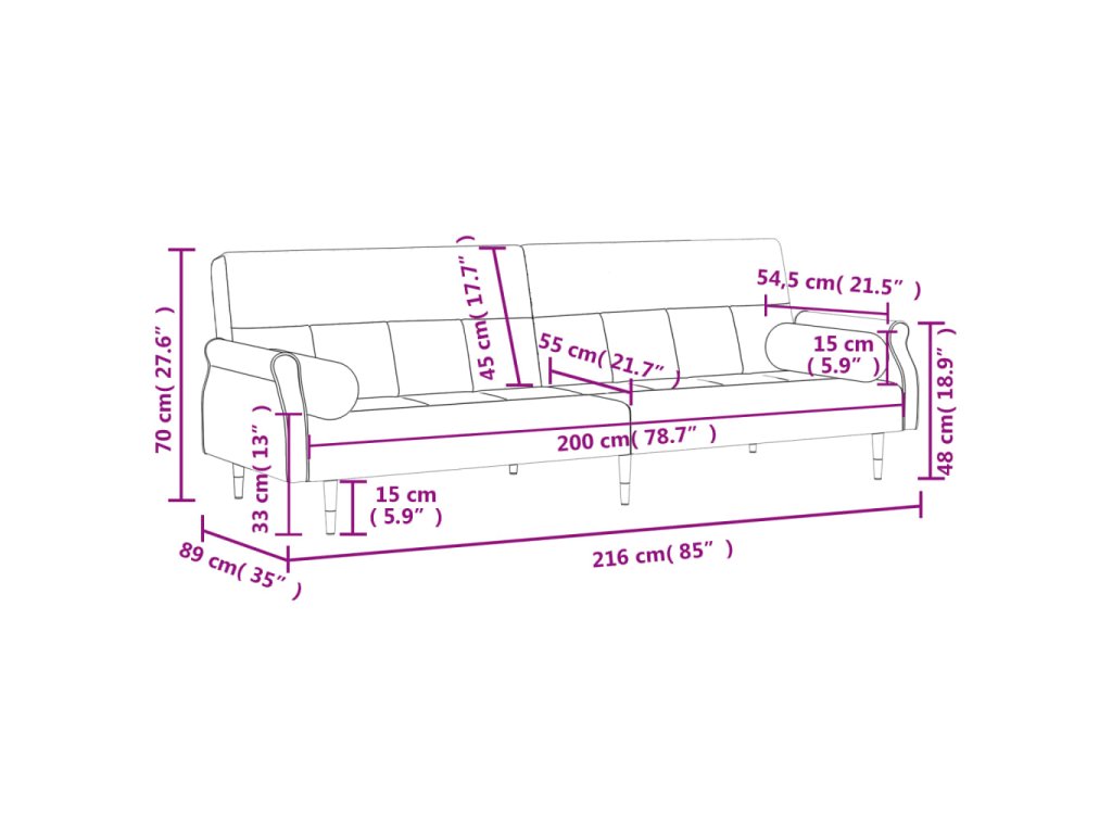 - Rozmery vankúša (každý): 15 x 54,5 cm (priemer x V)