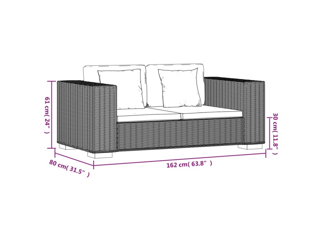 vidaXL Sedem dielna 2-miestna pohovka, súprava, pravý ratan