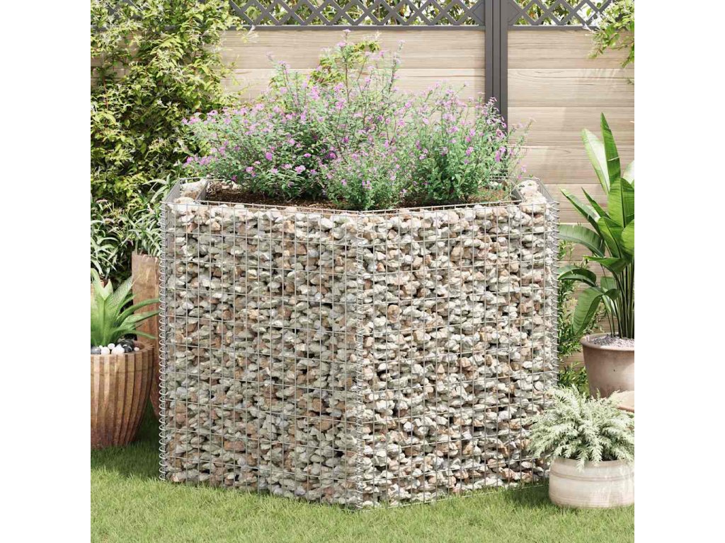 Tento gabiónový vyvýšený záhon predstavuje praktický spôsob, ako si v záhrade alebo na terase vytvoriť pevný a štýlový záhon s kvetmi či rastlinami.