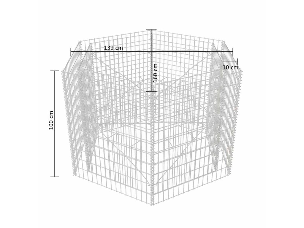 vidaXL Šesťhranný gabiónový vyvýšený záhon 160x140x100 cm