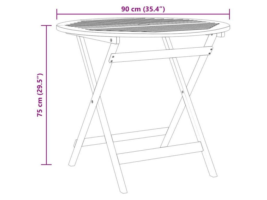 vidaXL Skladací záhradný stôl Ø90x75 cm eukalyptový masív