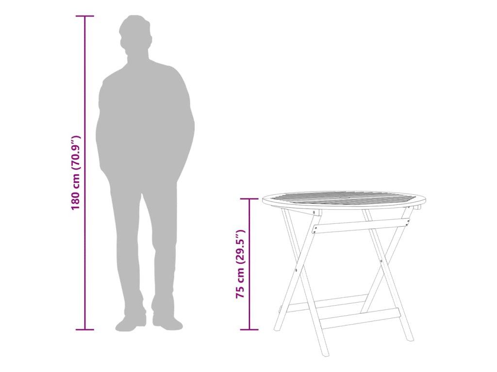 Jedálenský stôl je vyrobený z eukalyptového dreva, ktoré sa vyznačuje svojou odolnosťou voči poveternostným vplyvom a dlhou životnosťou. Povrch s olejovým náterom má jemný vzhľad a sa dá ľahko očistiť pomocou vlhkej handričky. Stôl sa dá poskladať, aby nezaberal veľa miesta, keď sa nepoužíva. Má tiež otvor na dáždnik.