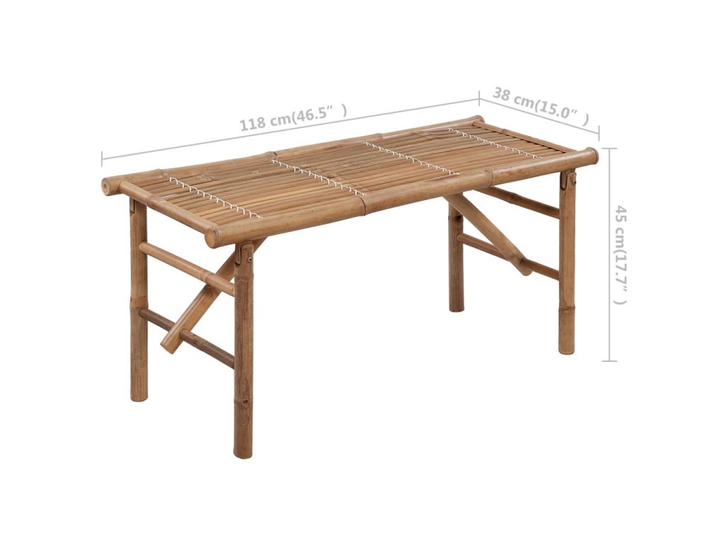 Vonkajšia lavica je sklopná, teda prenosná a dá sa ľahko uložiť alebo postaviť. Záhradná lavica je vyrobená z bambusu odolného voči poveternostným vplyvom a je pevná a stabilná. Ľahko sa čistí vlhkou handričkou. Pribalený vankúš poskytuje ďalšie pohodlie pri leňošení. Je vyrobený zo 100% polyesteru, ktorý je upravený tak, aby bol vodeodolný. Každý vankúš má dve sady šnúrok, ktorými sa pevne pripevní k lavičke.