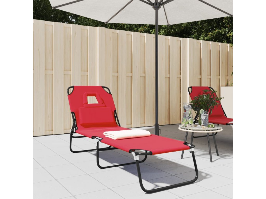 vidaXL Skladacie lehátko červené oxfordská látka a práškovaná oceľ