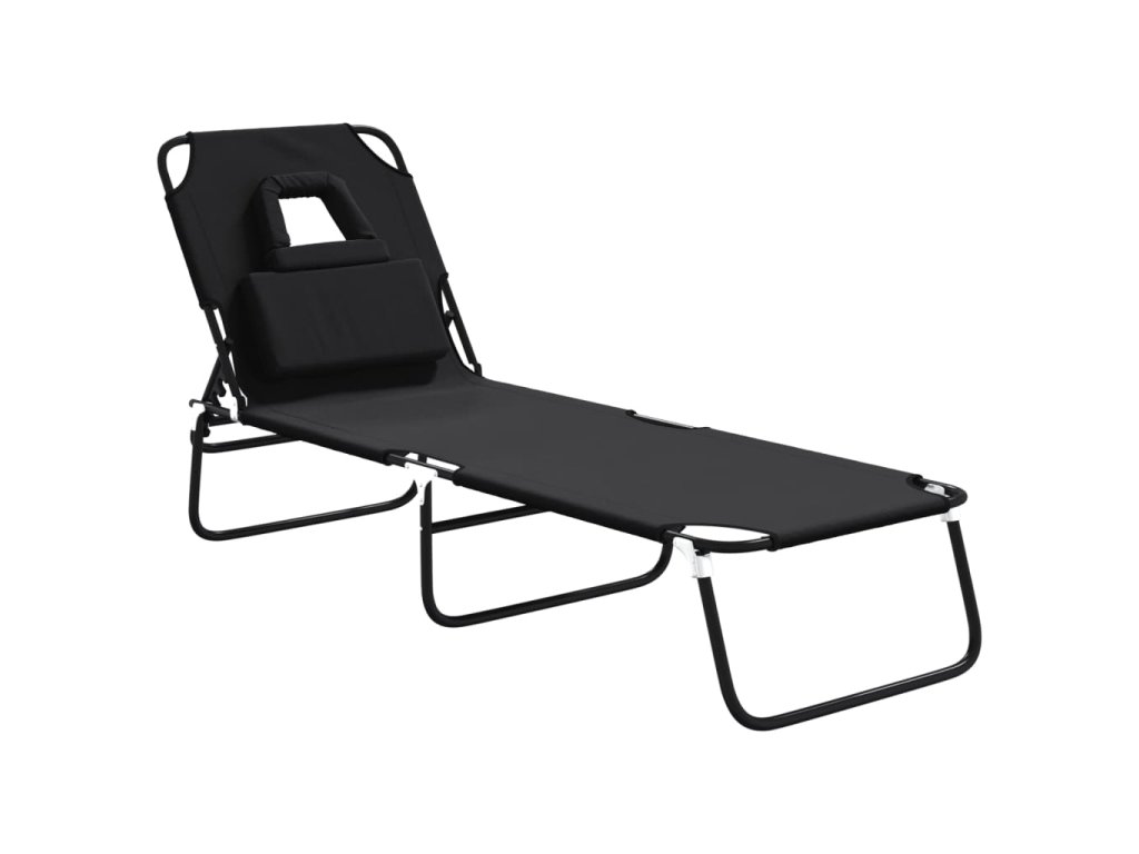 vidaXL Skladacie lehátko čierne oxfordská látka a práškovaná oceľ