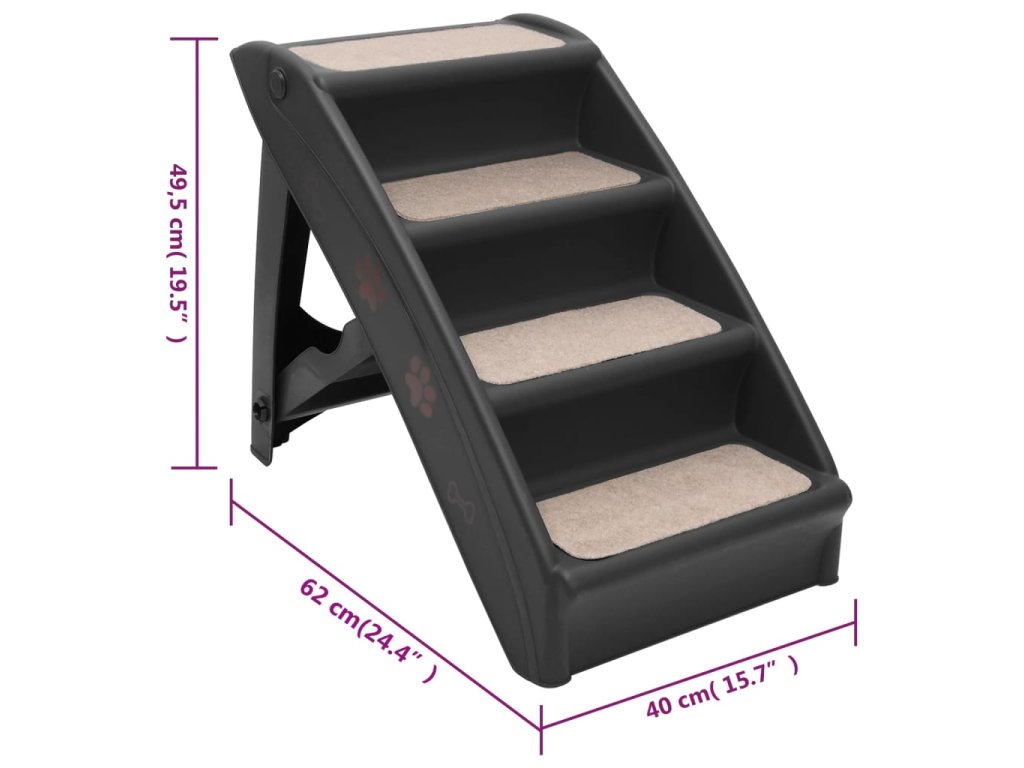 Ak váš pes alebo mačka nie sú dosť vysoké na to, aby dosiahli na posteľ alebo pohovku, skladacie schody uľahčia vášmu domácemu miláčikovi výstup na nábytok. Schody pre domáce zvieratá, ktoré vážia iba 2,02 kg, sa ľahko prenášajú a majú nosnosť až 75 kg. Aj keď sú ľahké, sú pevné a odolné. Zabudované bezpečnostné bočné zábradlia, plstené kryty a protišmykové nožičky zabraňujú kĺzaniu a skĺznutiu vášho miláčika počas výstupu a zostupu zo schodov.