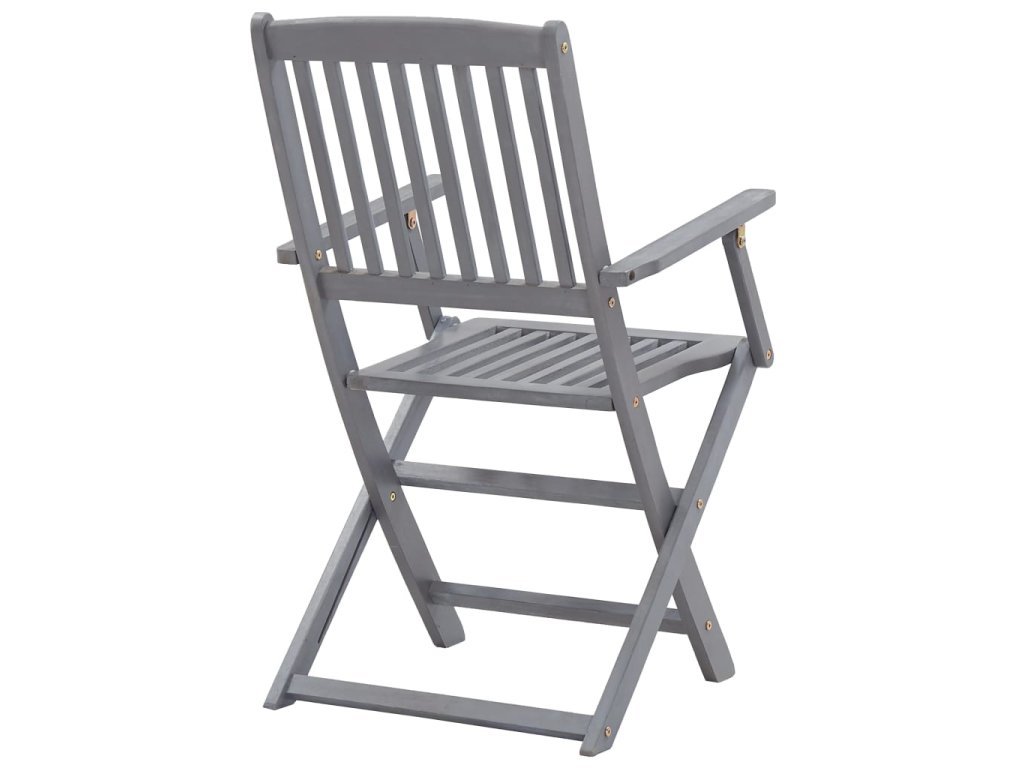 Jedálenské stoličky sú vyrobené z prvotriedneho akáciového dreva. Ide o tvrdé tropické drevo, ktoré je skutočne trvácne a odolné voči poveternostným vplyvom. Sivý povrch s ošúchaným vzhľadom sa dá ľahko očistiť pomocou navlhčenej handričky. Stoličky sa dajú poskladať, aby nezaberali veľa miesta, keď sa nepoužívajú. Stolička sa jednoducho montuje.