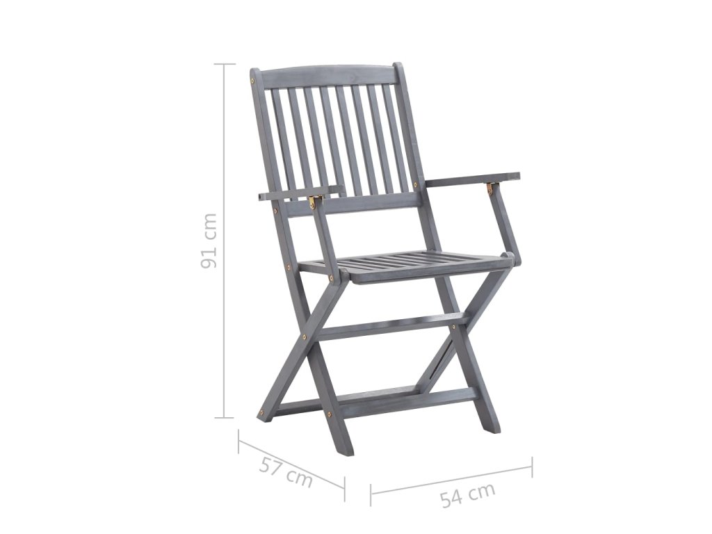 Jedálenské stoličky sú vyrobené z prvotriedneho akáciového dreva. Ide o tvrdé tropické drevo, ktoré je skutočne trvácne a odolné voči poveternostným vplyvom. Sivý povrch s ošúchaným vzhľadom sa dá ľahko očistiť pomocou navlhčenej handričky. Stoličky sa dajú poskladať, aby nezaberali veľa miesta, keď sa nepoužívajú.