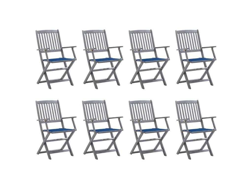 vidaXL Skladacie vonkajšie stoličky 8 ks s podložkami akáciový masív
