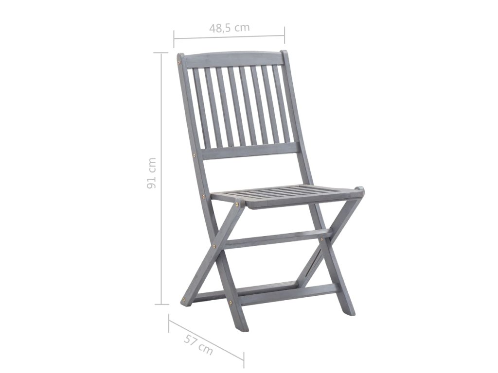 Tieto jedálenské stoličky sú vyrobené z masívneho akáciového dreva, tropického tvrdého dreva, ktoré je odolné voči poveternostným vplyvom a trvácne pre dlhé roky používania. Akáciový masív má dostatočnú silu, aby uniesol zaťaženie, ale odolá aj dlhodobému používaniu. Sivý premývaný povrch sa ľahko čistí vlhkou handričkou. Keď sa stoličky nepoužívajú, dajú sa sklopiť, aby sa ušetrilo miesto. Pribalený vankúš poskytuje vysoké pohodlie pri oddychu alebo stolovaní. Každý vankúš má dve sady šnúrok, pomocou ktorých ho pevne pripevníte k stoličke.