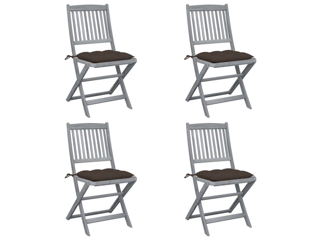 vidaXL Skladacie vonkajšie stoličky s podložkami 4 ks akáciový masív