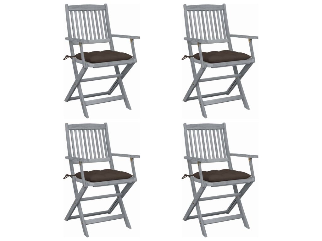 vidaXL Skladacie vonkajšie stoličky s podložkami 4 ks akáciový masív