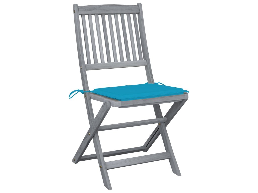 Tieto jedálenské stoličky sú vyrobené z masívneho akáciového dreva, tropického tvrdého dreva, ktoré je odolné voči poveternostným vplyvom a trvácne pre dlhé roky používania. Akáciový masív má dostatočnú silu, aby uniesol zaťaženie, ale odolá aj dlhodobému používaniu. Sivý premývaný povrch sa ľahko čistí vlhkou handričkou. Keď sa stoličky nepoužívajú, dajú sa sklopiť, aby sa ušetrilo miesto. Pribalený vankúš poskytuje vysoké pohodlie pri oddychu alebo stolovaní. Každý vankúš má dve sady šnúrok, pomocou ktorých ho pevne pripevníte k stoličke.