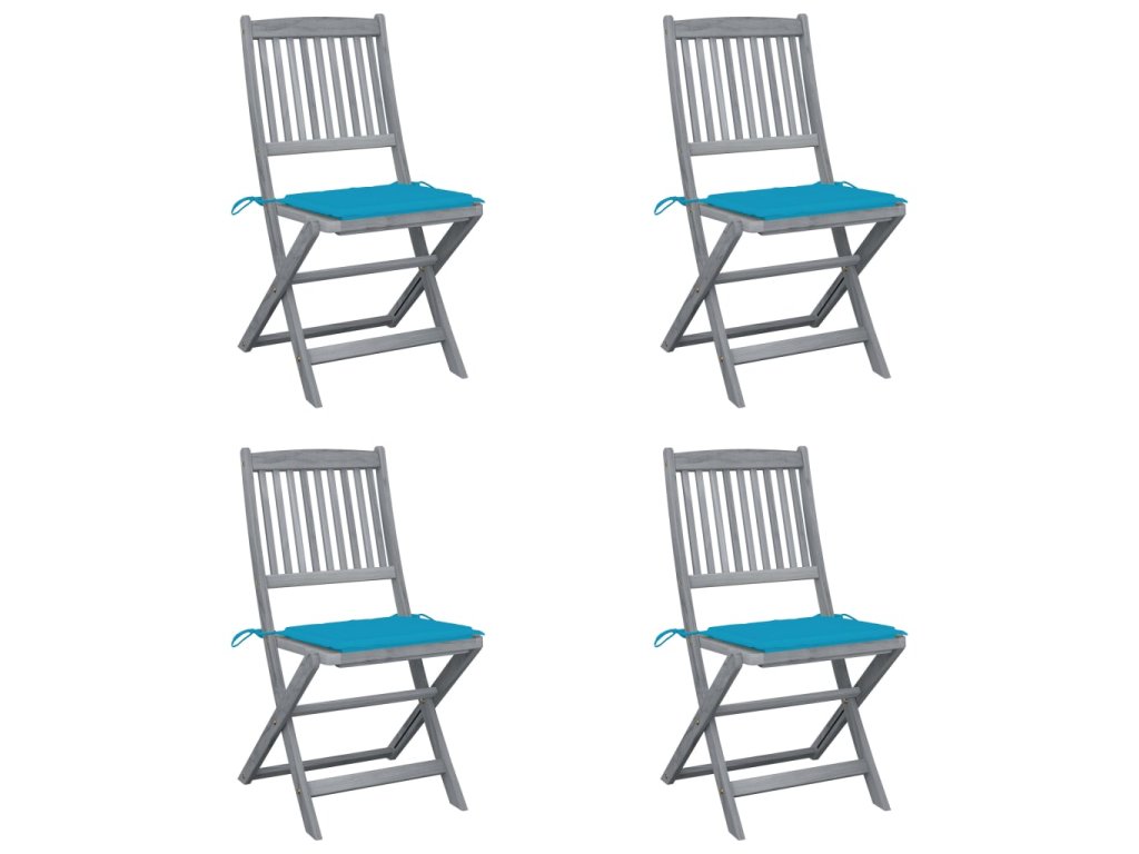 vidaXL Skladacie vonkajšie stoličky s podložkami 4 ks akáciový masív