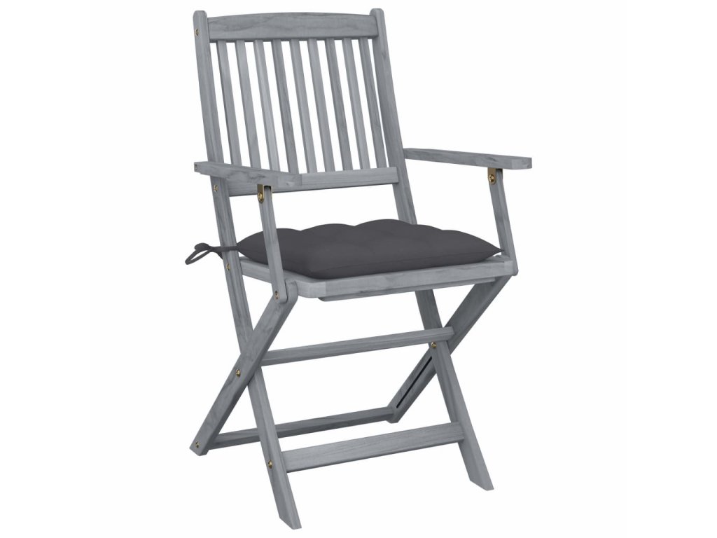 Tieto jedálenské stoličky sú vyrobené z masívneho akáciového dreva, tropického tvrdého dreva, ktoré je odolné voči poveternostným vplyvom a trvácne pre dlhé roky používania. Akáciový masív má dostatočnú silu, aby uniesol zaťaženie, ale odolá aj dlhodobému používaniu. Sivý premývaný povrch sa ľahko čistí vlhkou handričkou. Keď sa stoličky nepoužívajú, dajú sa sklopiť, aby sa ušetrilo miesto. Pribalený vankúš poskytuje vysoké pohodlie pri oddychu alebo stolovaní. Každý vankúš má dve sady šnúrok, pomocou ktorých ho pevne pripevníte k stoličke.