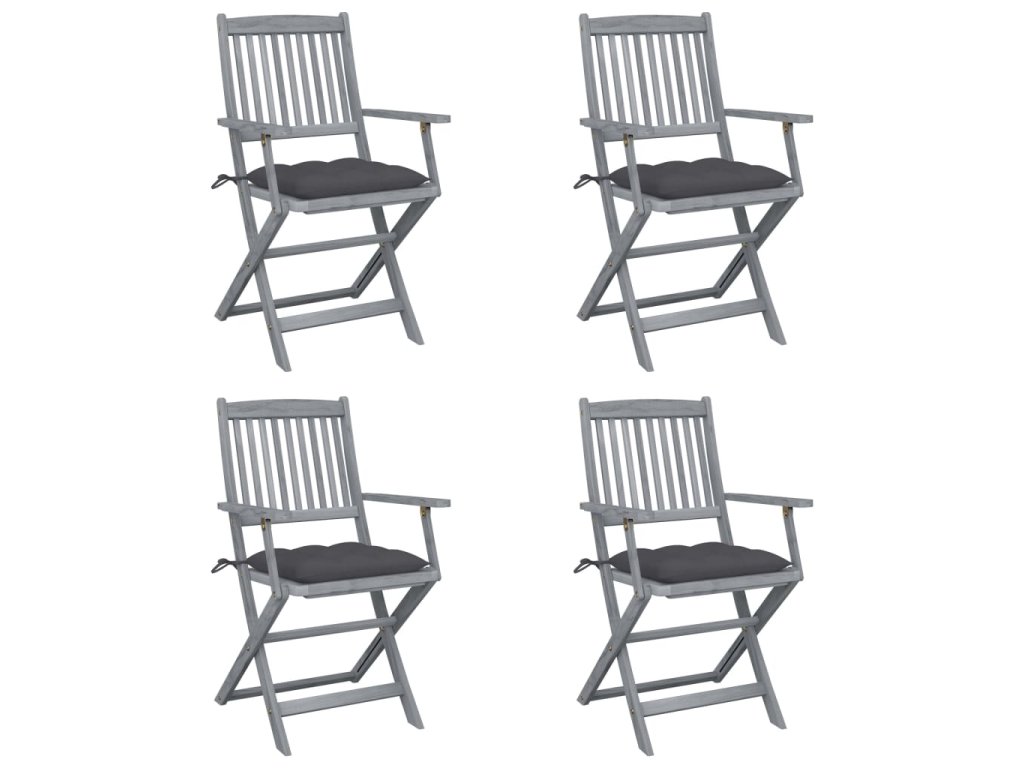 vidaXL Skladacie vonkajšie stoličky s podložkami 4 ks akáciový masív