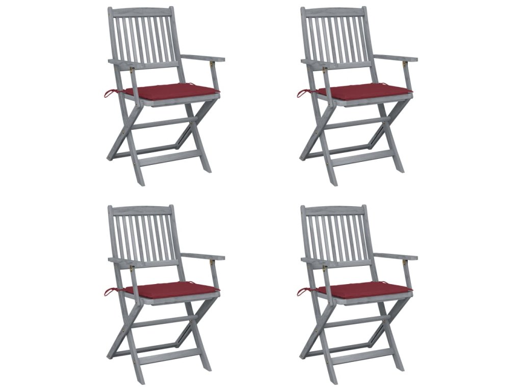 vidaXL Skladacie vonkajšie stoličky s podložkami 4 ks akáciový masív