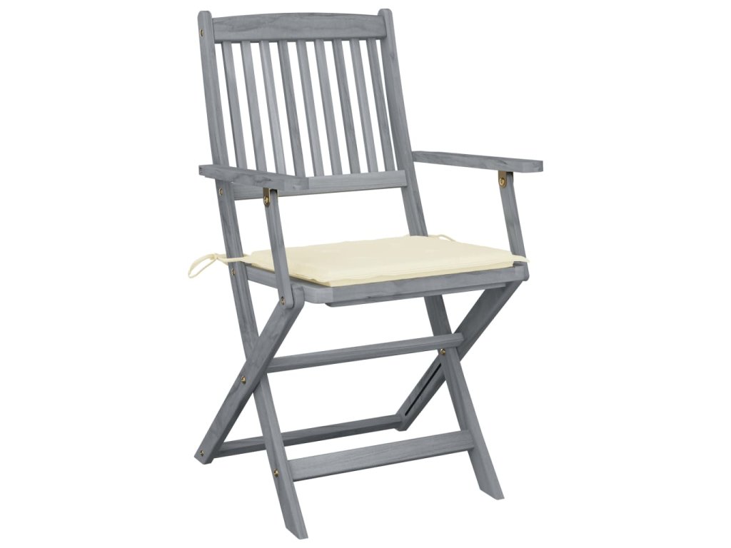 Tieto jedálenské stoličky sú vyrobené z masívneho akáciového dreva, tropického tvrdého dreva, ktoré je odolné voči poveternostným vplyvom a trvácne pre dlhé roky používania. Akáciový masív má dostatočnú silu, aby uniesol zaťaženie, ale odolá aj dlhodobému používaniu. Sivý premývaný povrch sa ľahko čistí vlhkou handričkou. Keď sa stoličky nepoužívajú, dajú sa sklopiť, aby sa ušetrilo miesto. Pribalený vankúš poskytuje vysoké pohodlie pri oddychu alebo stolovaní. Každý vankúš má dve sady šnúrok, pomocou ktorých ho pevne pripevníte k stoličke.