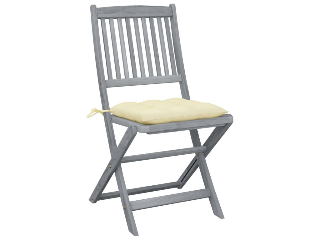 Tieto jedálenské stoličky sú vyrobené z masívneho akáciového dreva, tropického tvrdého dreva, ktoré je odolné voči poveternostným vplyvom a trvácne pre dlhé roky používania. Akáciový masív má dostatočnú silu, aby uniesol zaťaženie, ale odolá aj dlhodobému používaniu. Sivý premývaný povrch sa ľahko čistí vlhkou handričkou. Keď sa stoličky nepoužívajú, dajú sa sklopiť, aby sa ušetrilo miesto. Pribalený vankúš poskytuje vysoké pohodlie pri oddychu alebo stolovaní. Každý vankúš má dve sady šnúrok, pomocou ktorých ho pevne pripevníte k stoličke.