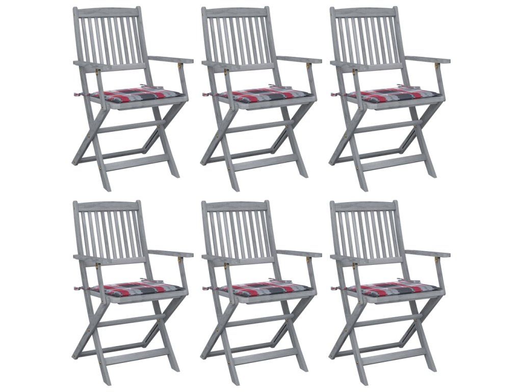 vidaXL Skladacie vonkajšie stoličky s podložkami 6 ks akáciový masív