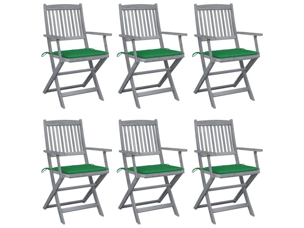 vidaXL Skladacie vonkajšie stoličky s podložkami 6 ks akáciový masív