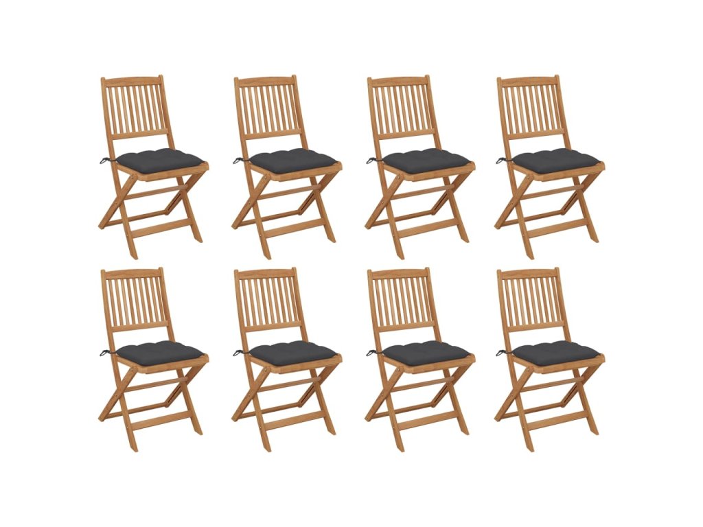 vidaXL Skladacie vonkajšie stoličky s podložkami 8 ks akáciový masív