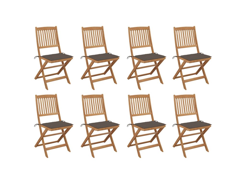 vidaXL Skladacie vonkajšie stoličky s podložkami 8 ks akáciový masív
