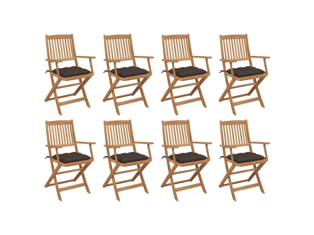 vidaXL Skladacie vonkajšie stoličky s podložkami 8 ks akáciový masív