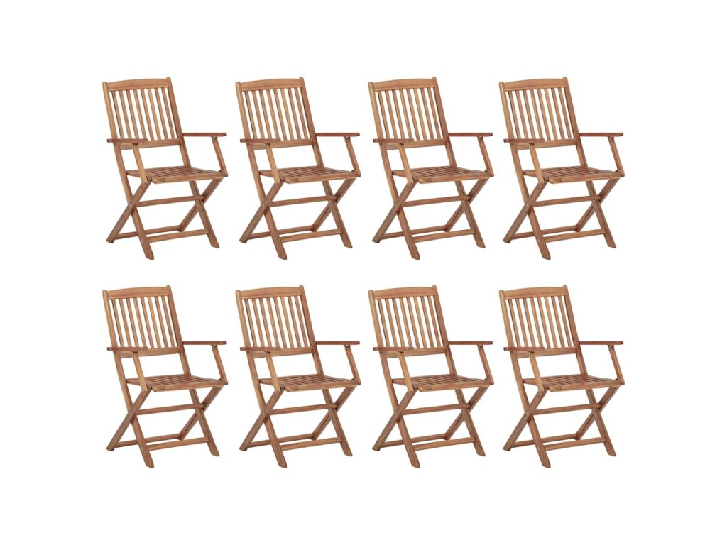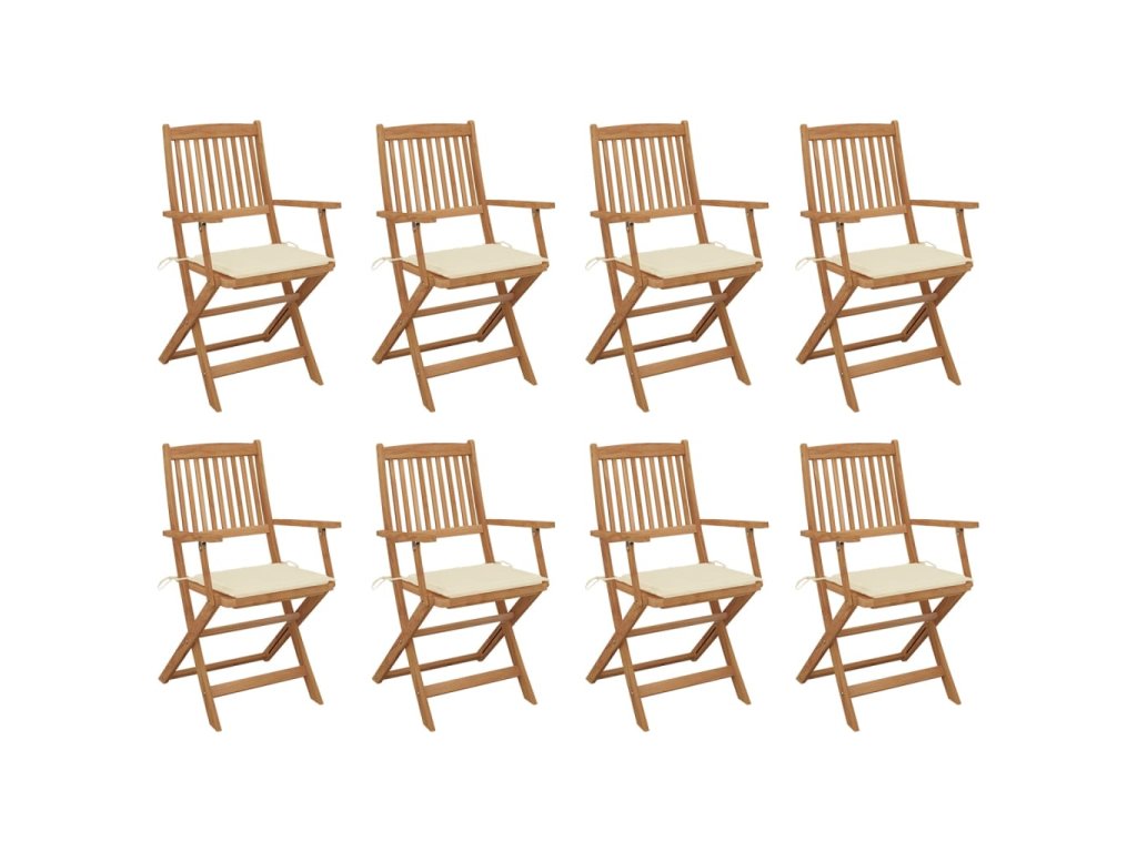 vidaXL Skladacie vonkajšie stoličky s podložkami 8 ks akáciový masív