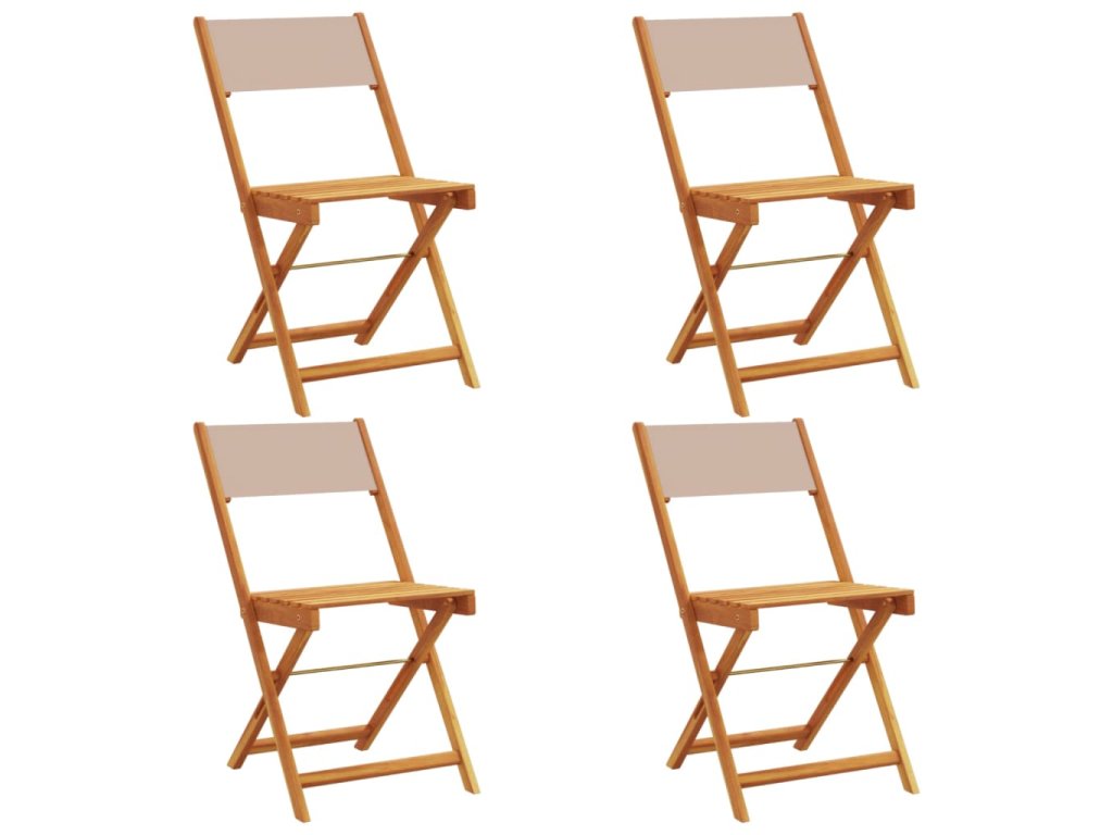 vidaXL Skladacie záhr. stoličky 4 ks, sivohnedé, látka a dubový masív