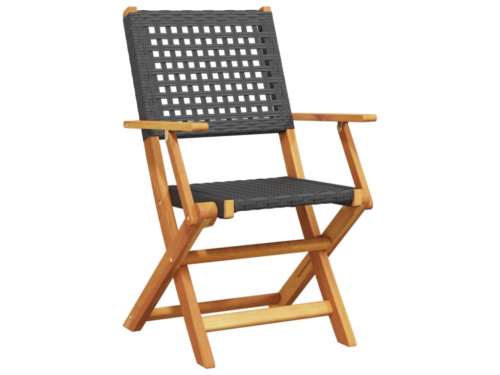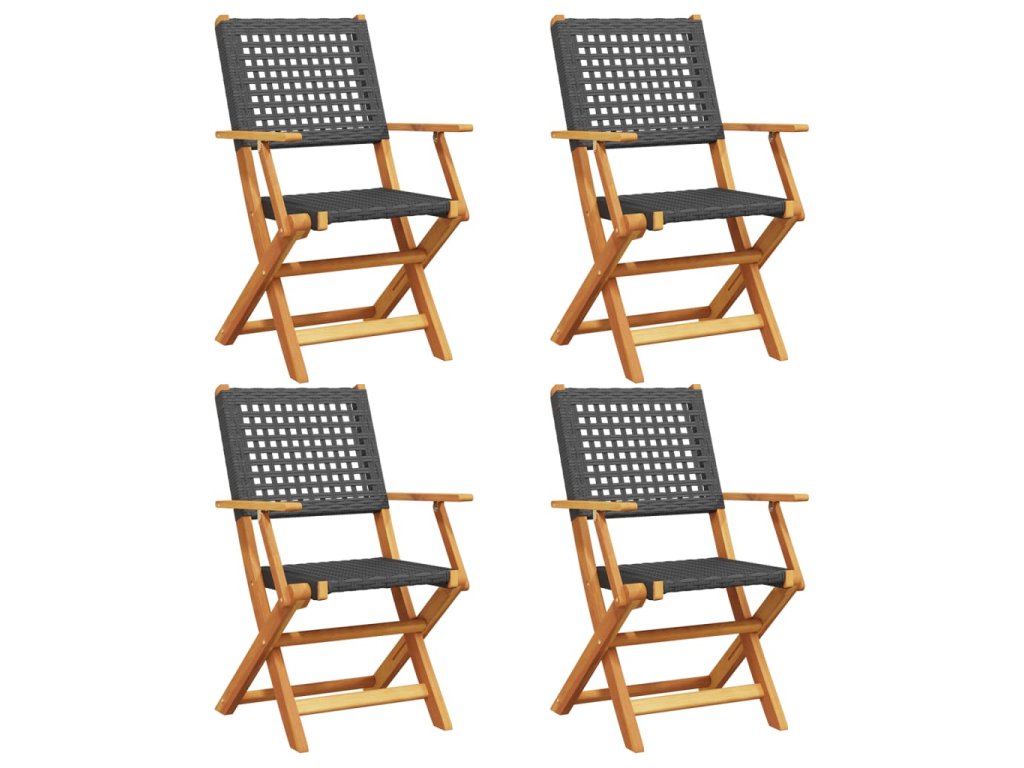 vidaXL Skladacie záhr. stoličky 4 ks čierne polyratan a masívne drevo