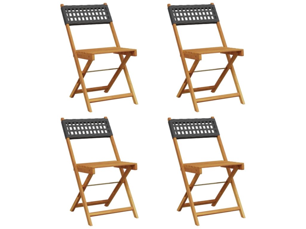 vidaXL Skladacie záhr. stoličky 4 ks čierne polyratan a masívne drevo