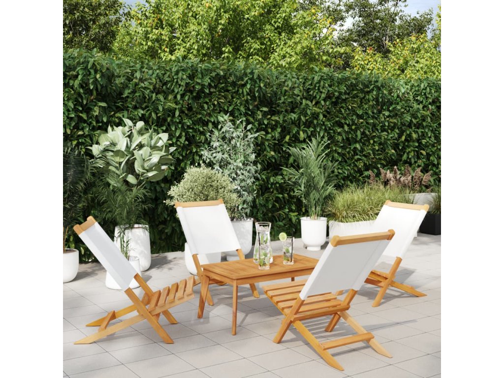 vidaXL Skladacie záhr. stoličky 4ks krémovobiele látka a masívne drevo