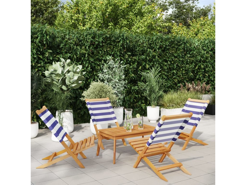 vidaXL Skladacie záhr. stoličky 4ks modrá a biela látka+masívne drevo